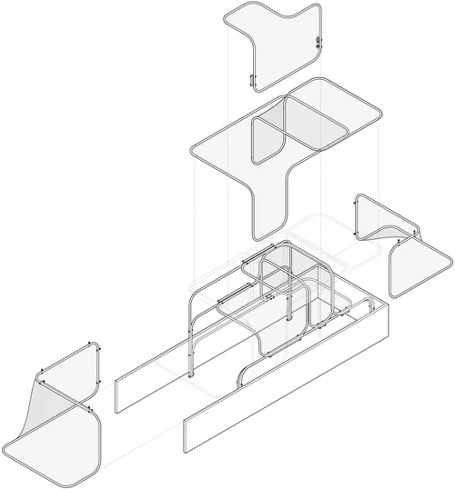 A creative solution to the issue of keeping plants alive throughout the entire winter season. The group as a whole was interested in the idea of “nesting” different spaces within other spaces to create a feeling of spatial overlaps within the hoop house. The purpose of this is to add different layers of varying heat within the hoop house. These nested spaces would be accessable through the movement of the outer pieces. The interactive aspect of the project would add an educational component to the overall design in that it allows the user to figure out how the different pieces relate to one another
