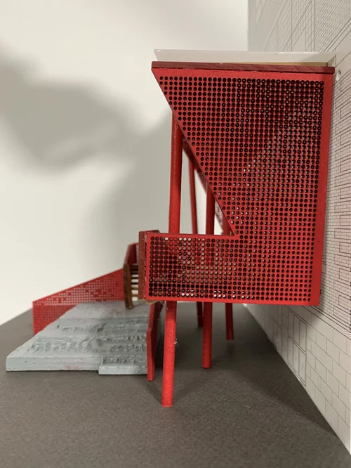 This project was for a design build studio, where, in collaboration with Alyssa Mayorga and Yashwitha Reddy, we were tasked with the design of a porch that extended off the side of an existing building in Wilkinsburg, a just East of Pittsburgh. The porch is being commissioned by Community Forge, an after school program that owns the building. The porch is designed to be a playful, colorful, and dynamic piece of architecture that invites the members of Community Forge and whoever else uses the playground to hang out and play.