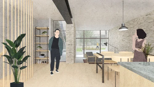 This proposal for the Helsinki Design Museum combines the existing programs in the space (a market and a post office) with the new Museum to create a single, cohesive building that brings together people from all over Helsinki. The main space in the building has been named the Mixing Chamber. It serves as a circulation point that creates connections between people travelling from the street to the plaza as well as between the different spaces in the building. The museum’s gallery spaces are located on the second and third floors of the building on both the North and South, with the mixing chamber rising up through the middle. The gallery spaces are separated by ramps that spiral up around the building’s central core, creating moments in between galleries to view out at the city, or in at the mixing chamber. The gallery spaces challenge the traditional “white box” design through their use of timber construction and natural lighting. This museum is meant to be a space for people to come together and enjoy the uniquely Finish design.
